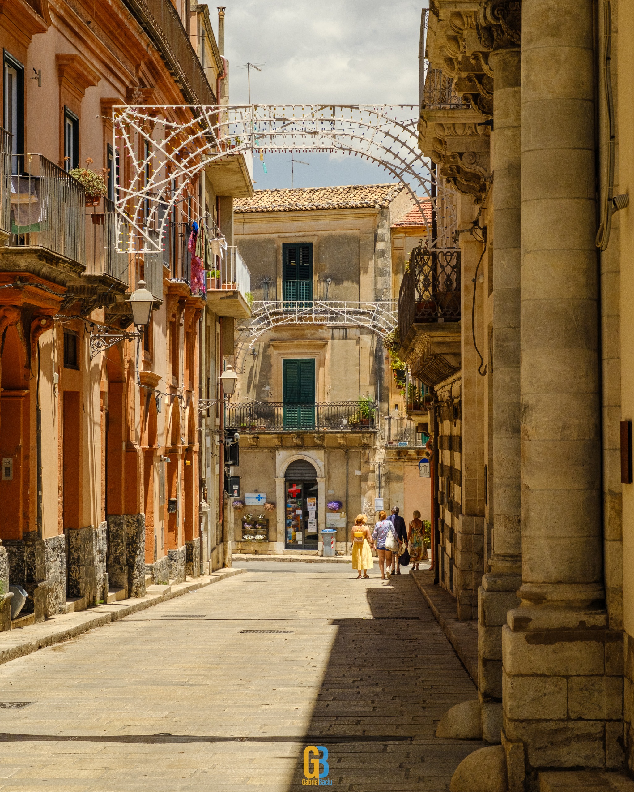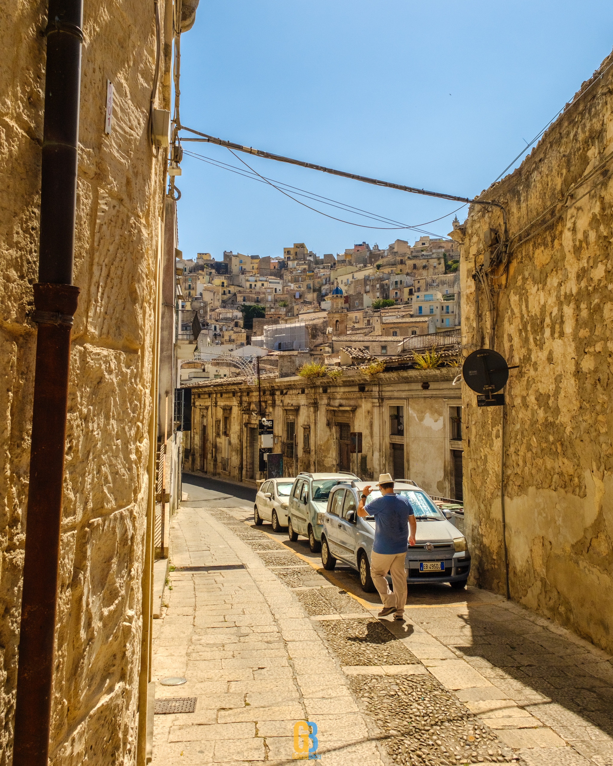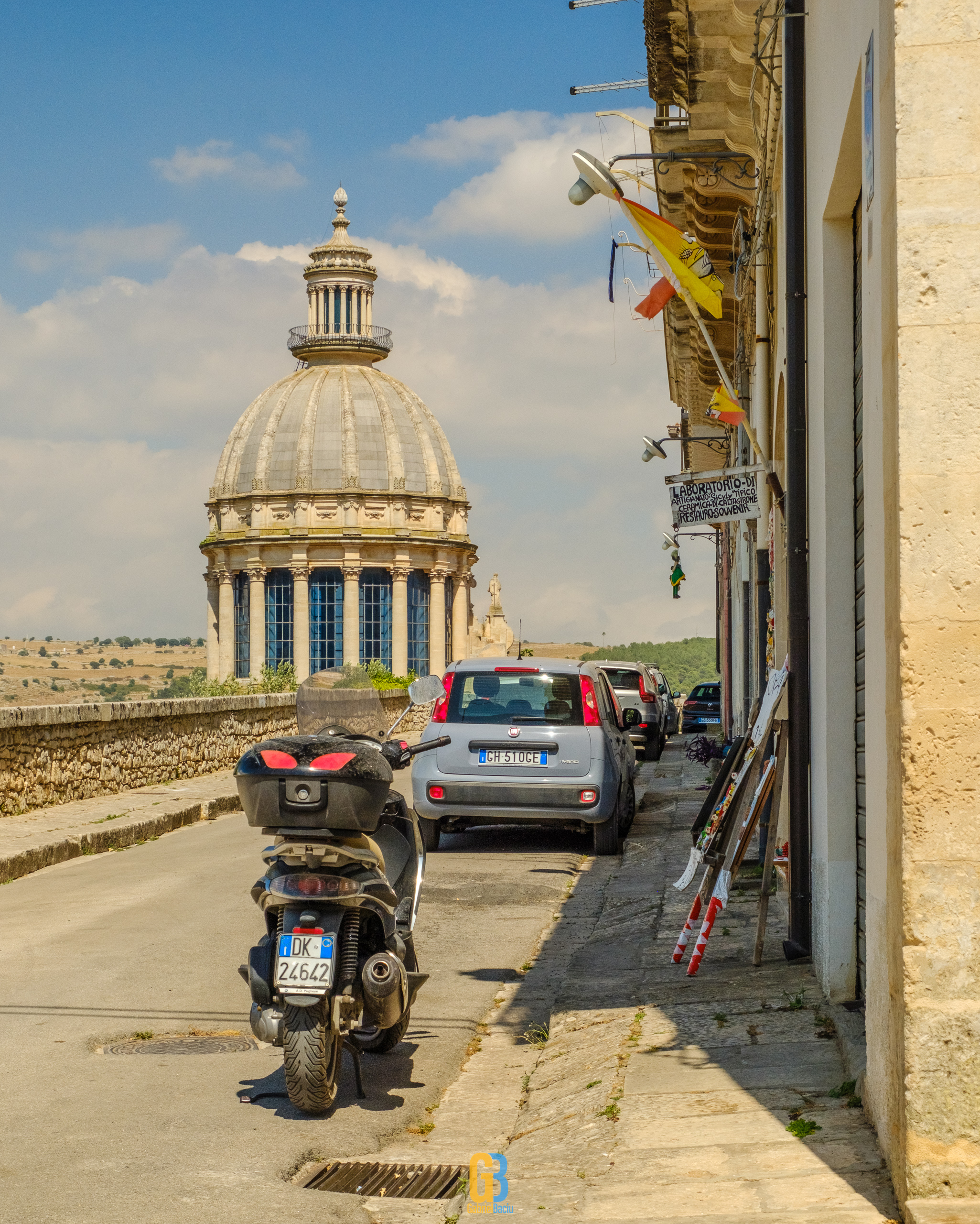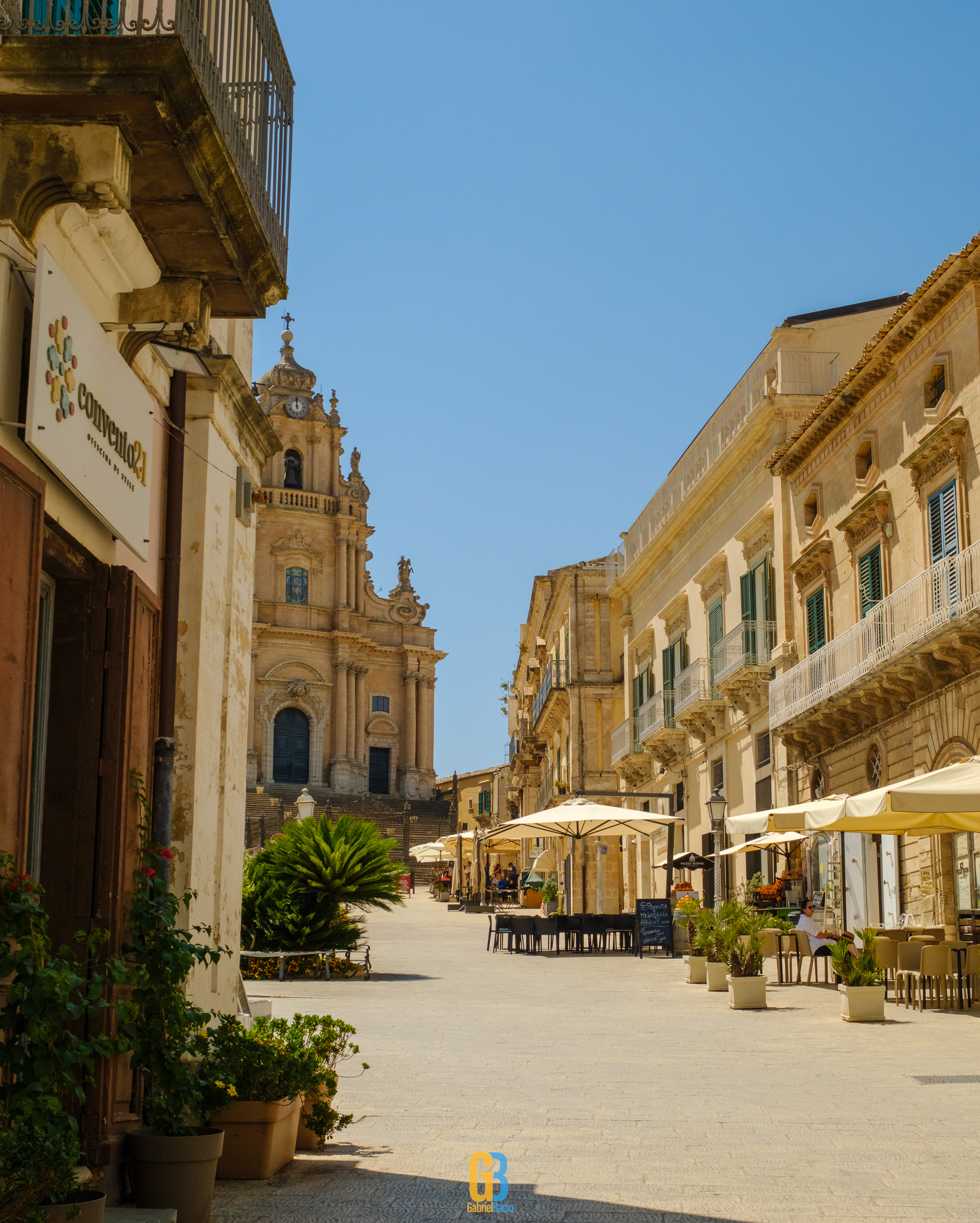 E unul dintre cele mai frumoase orașe din Sicilia pe care le-am vizitat. Dacă ar fi să fac un clasament ar fi pe locul doi, după Taormina. Este un oraș cu o istorie bogată, marcat de un cutremur major în anul 1693 care a dărâmat mare parte dintre clădiri, după care a fost reconstruit iar noile clădiri au fost decorate în stil Baroque. Am lăsat mașina într-o parcare destul de liberă undeva la poalele dealului pe care-i situat orașul și am purces pe scări în sus. La peste 30 de grade celsius, prima oprire a venit repede, pentru o limonadă rece și o cafea. Eu am băut cafeaua aia scurtă a lor cam peste tot unde am făcut pauză. Știu sicilienii să facă o cafea al naibii de bună, parcă nu la fel de bună ca cea din Portugalia dar am observat că în multe locuri din Sicilia se servește cafea de origine Brazilia. În Portugalia cam peste tot cafeaua este braziliană.