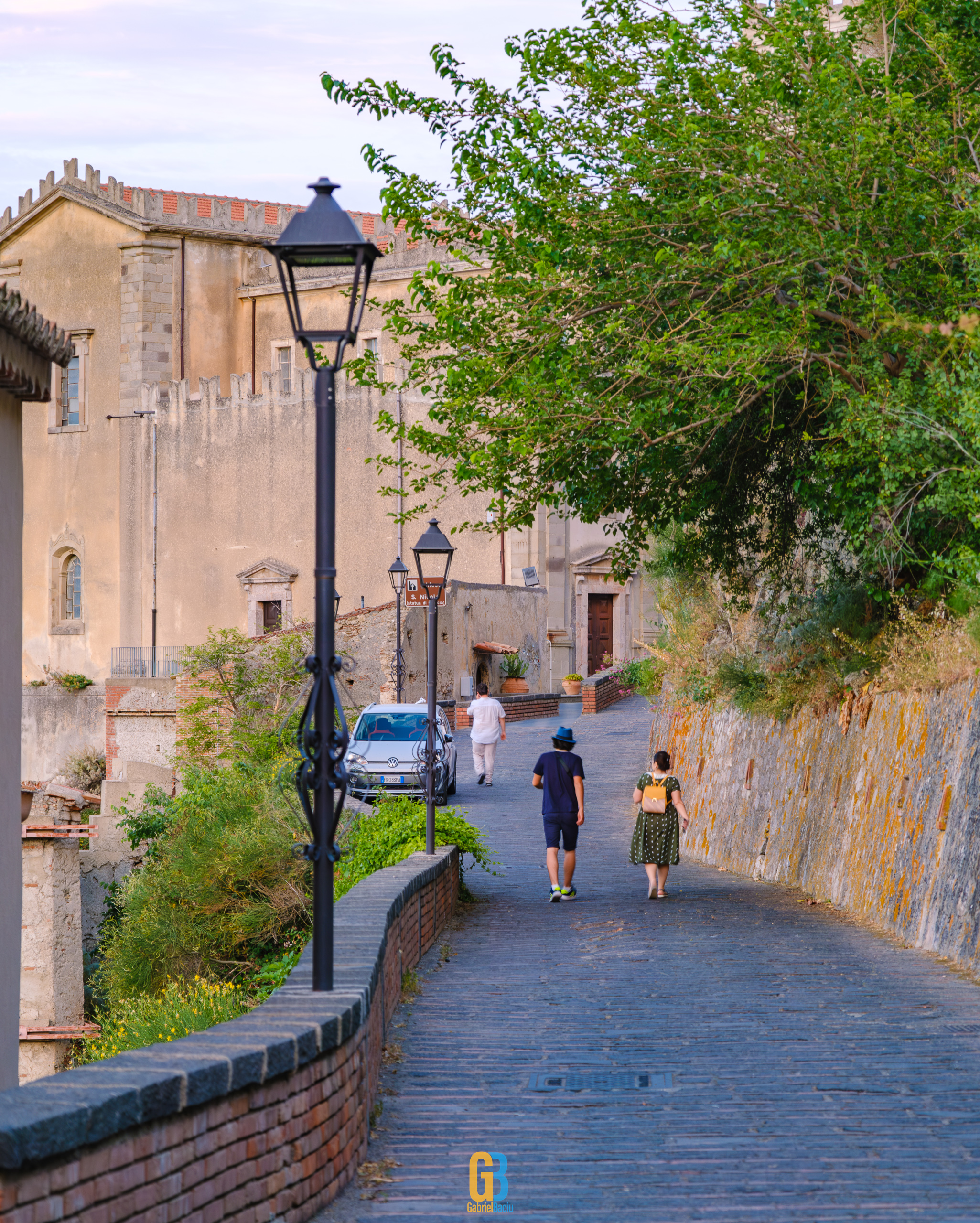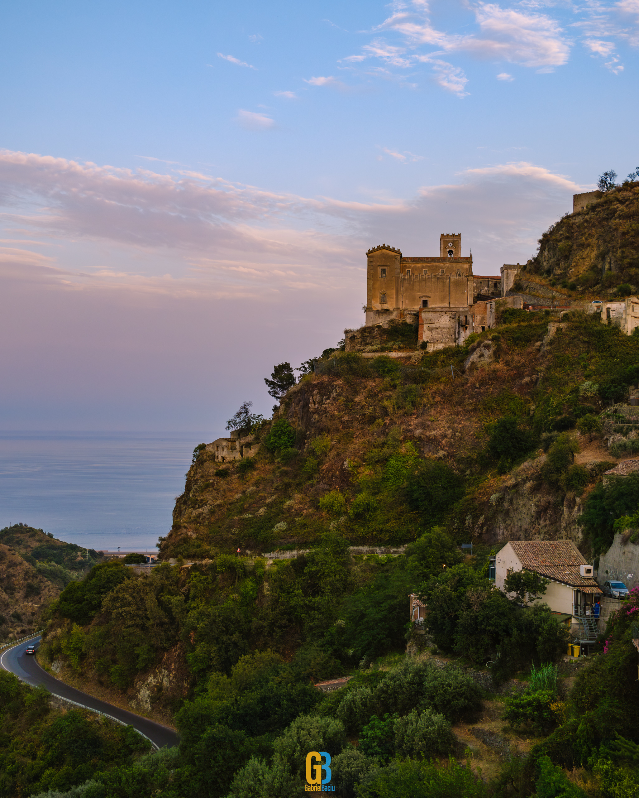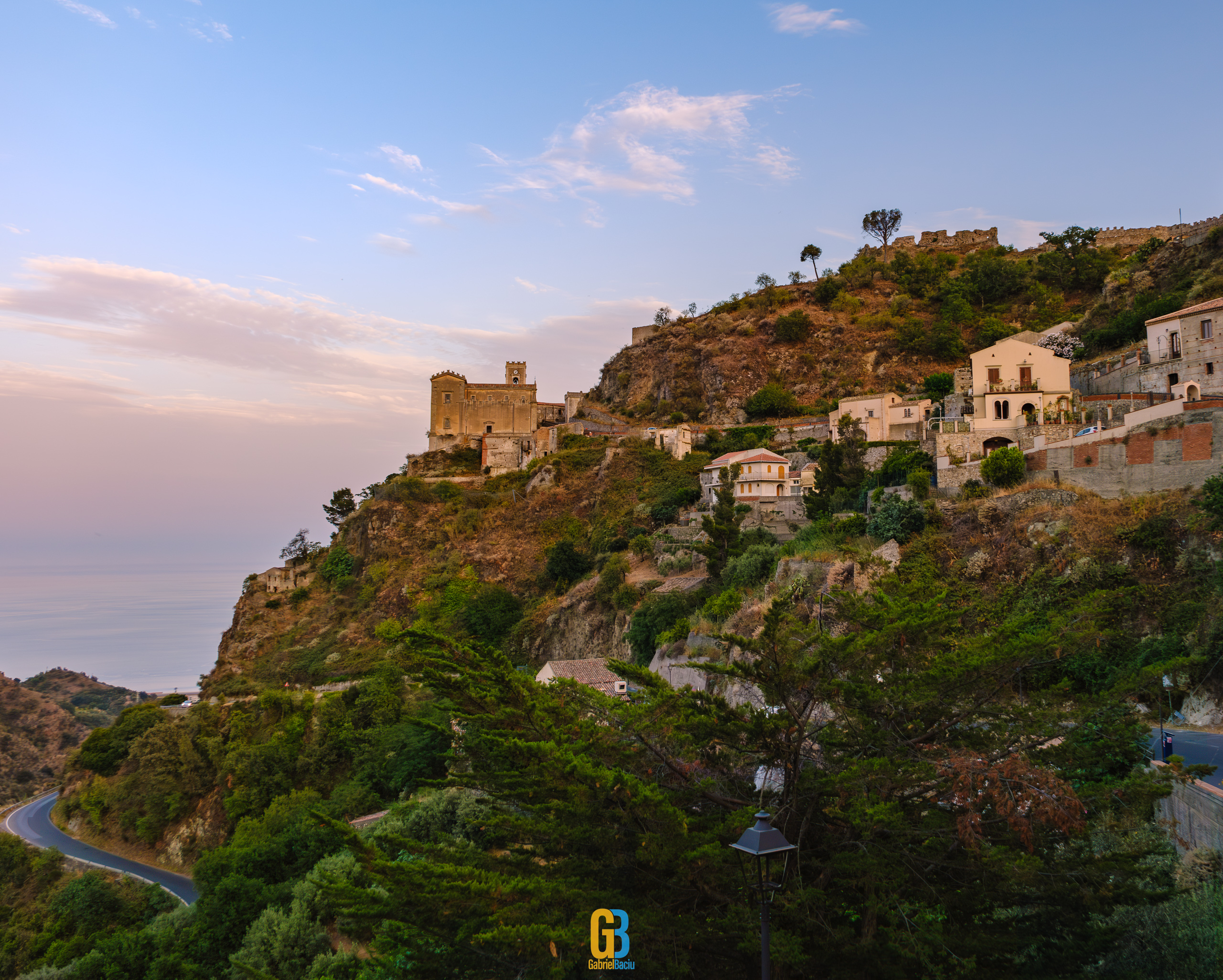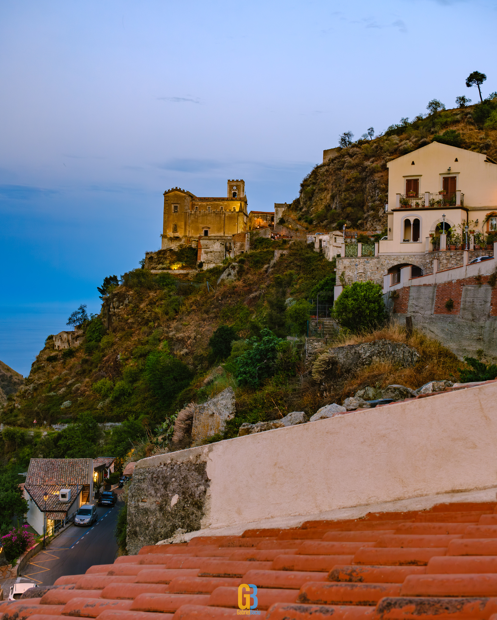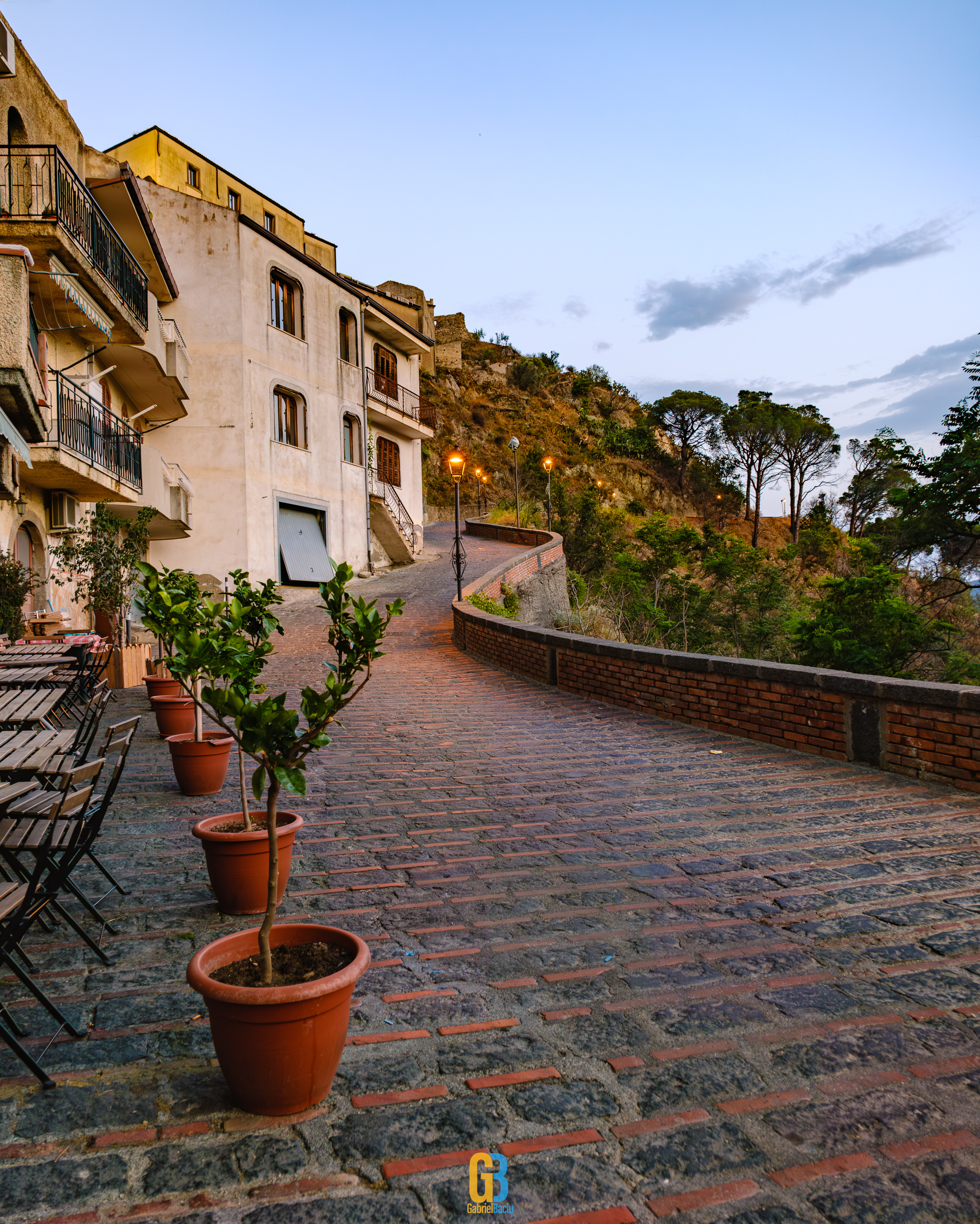 Dacă barul e interesant și cam atât, nu același lucru se poate spune și despre localitate în sine, care este îngrijită și șerpuiește frumos pe coama munticelului și se termină teatral cu o biserică catolică construită în secolul XIII. Într-o parte se vedea spectaculos valea cu serpentinele pe care tocmai venisem, iar mai departe se vedea marea și mai departe Italia continentală. Și s-a lăsat seara cât ne plimbam noi pe acolo și s-au aprins luminile stradale iar liniștea era spartă doar de ceva muzica italiană ce se auzea de la una dintre terase la un volum numai potrivit pentru a crea atmosferă. La o altă terasă, cea a pizzeriei de vis-a-vis de Bar Vitelli, câțiva localnici se adunaseră să vadă împreună un meci pe care naționala Italiei îl juca în Campionatul European de Fotbal. Sincer, nu știu cum e ziua acolo, cât de aglomerat este, dar atmosfera din momentul ăla și priveliștea mă făceau să mă imaginez stând un weekend întreg acolo, ziua plimbându-mă în natură, seara savurând un pahar de vin alb din struguri de viță de vie de pe Etna. Așa să-mi ajute Dumnezeu.