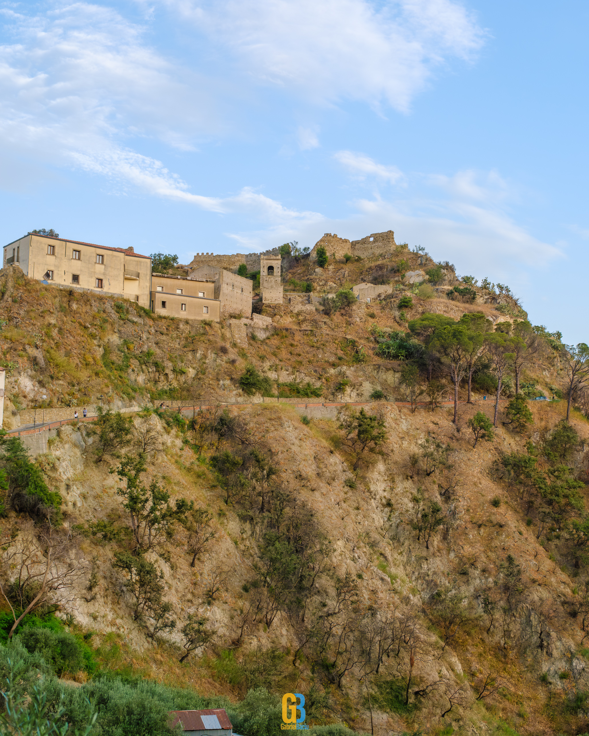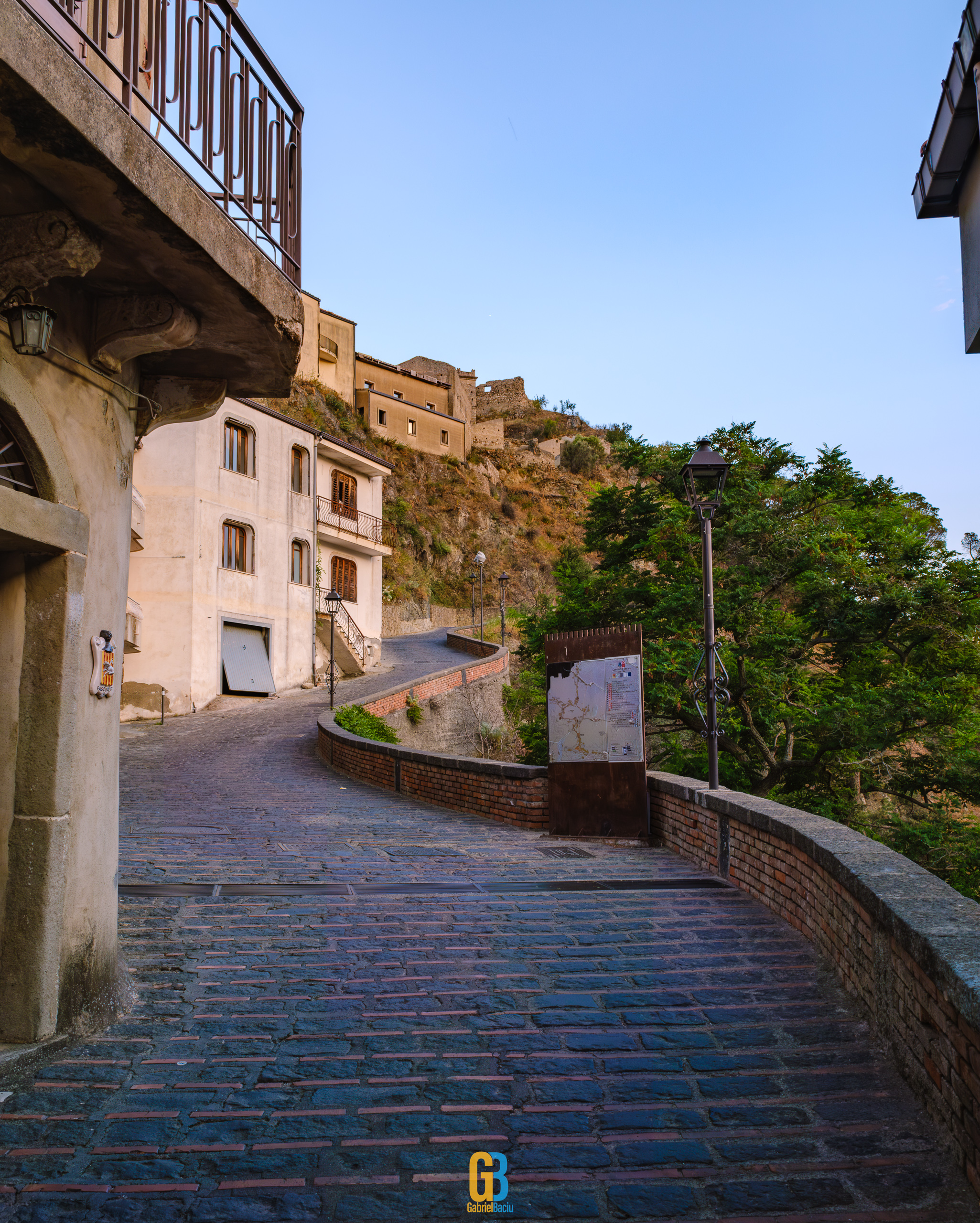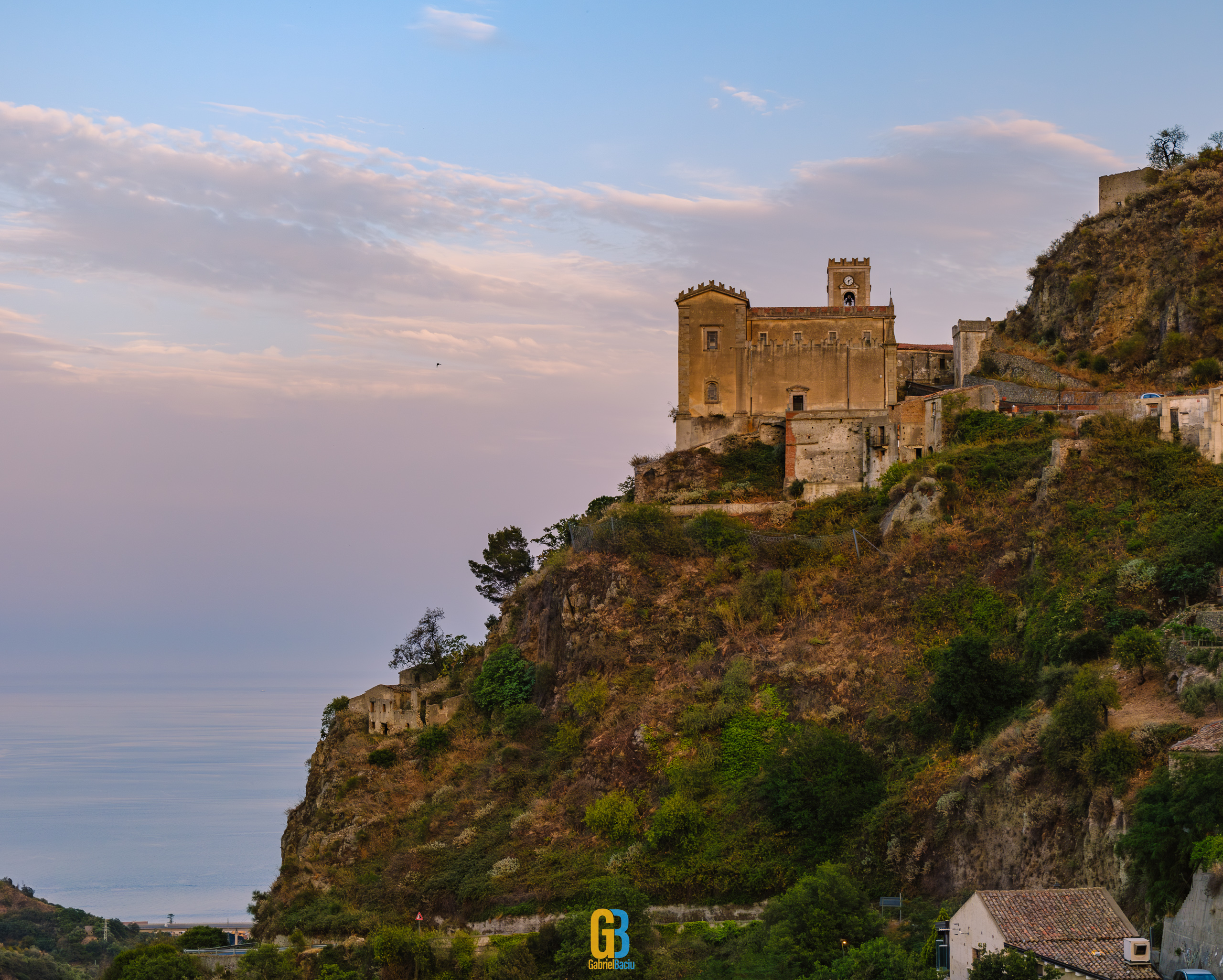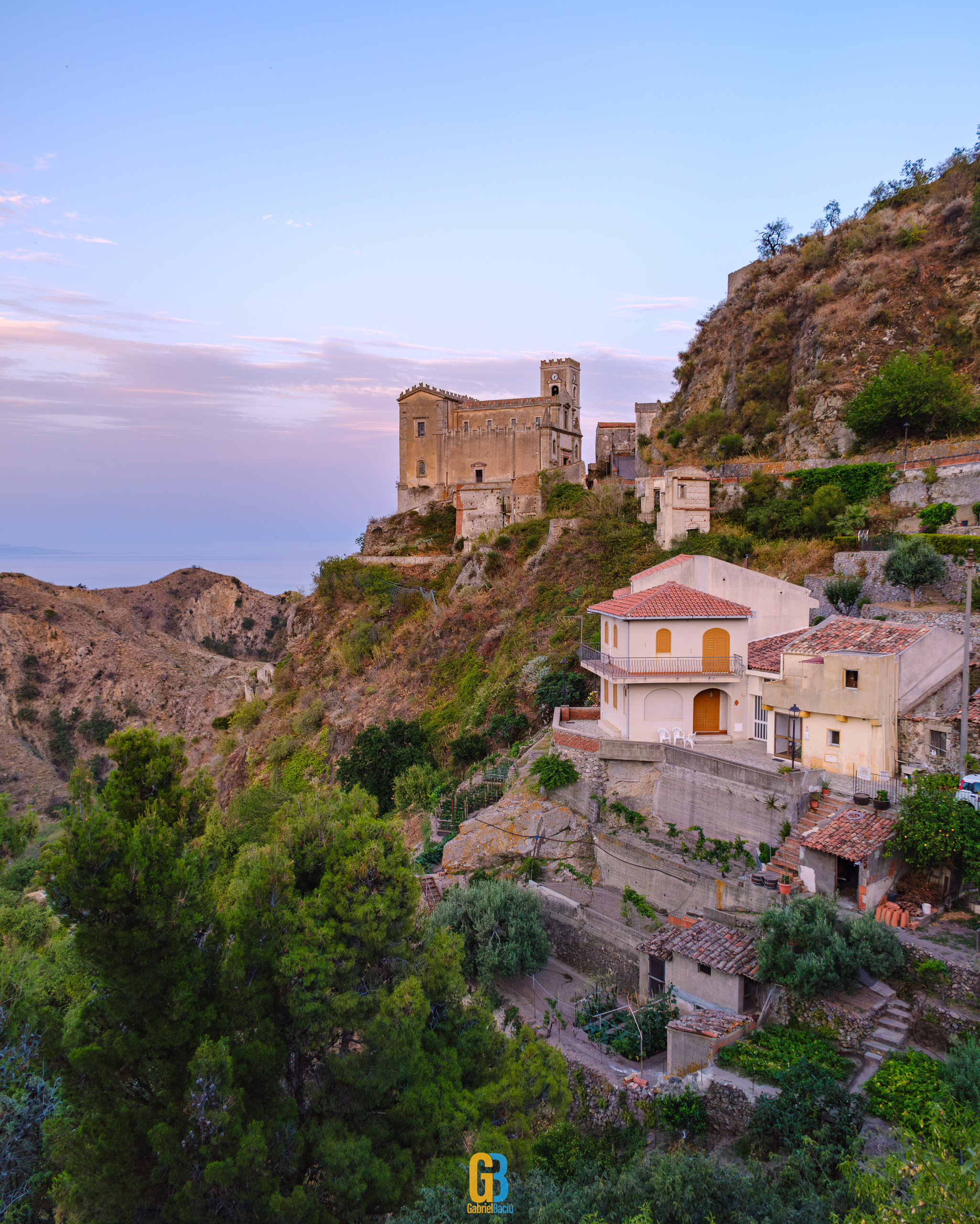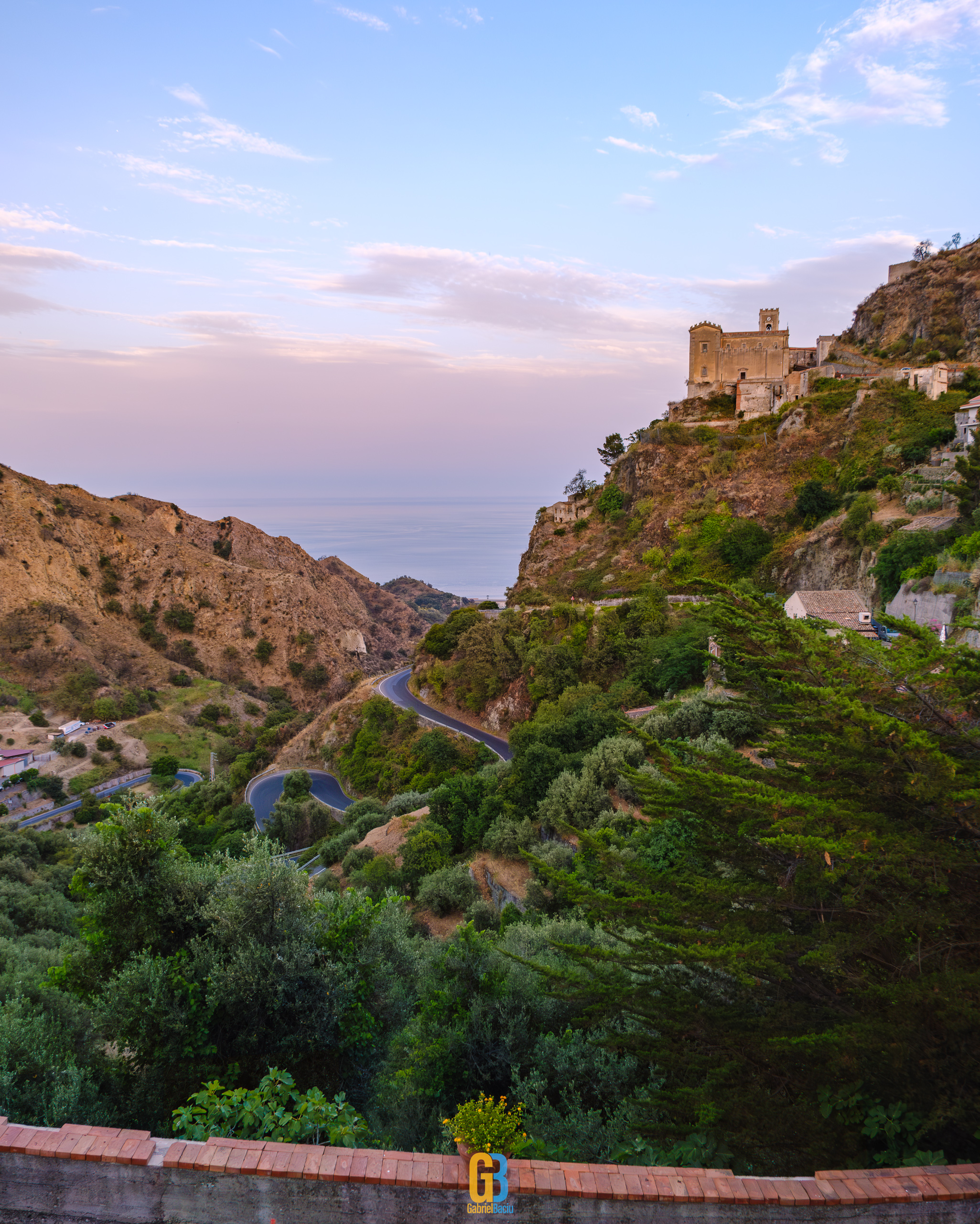 Dacă barul e interesant și cam atât, nu același lucru se poate spune și despre localitate în sine, care este îngrijită și șerpuiește frumos pe coama munticelului și se termină teatral cu o biserică catolică construită în secolul XIII. Într-o parte se vedea spectaculos valea cu serpentinele pe care tocmai venisem, iar mai departe se vedea marea și mai departe Italia continentală. Și s-a lăsat seara cât ne plimbam noi pe acolo și s-au aprins luminile stradale iar liniștea era spartă doar de ceva muzica italiană ce se auzea de la una dintre terase la un volum numai potrivit pentru a crea atmosferă. La o altă terasă, cea a pizzeriei de vis-a-vis de Bar Vitelli, câțiva localnici se adunaseră să vadă împreună un meci pe care naționala Italiei îl juca în Campionatul European de Fotbal. Sincer, nu știu cum e ziua acolo, cât de aglomerat este, dar atmosfera din momentul ăla și priveliștea mă făceau să mă imaginez stând un weekend întreg acolo, ziua plimbându-mă în natură, seara savurând un pahar de vin alb din struguri de viță de vie de pe Etna. Așa să-mi ajute Dumnezeu.