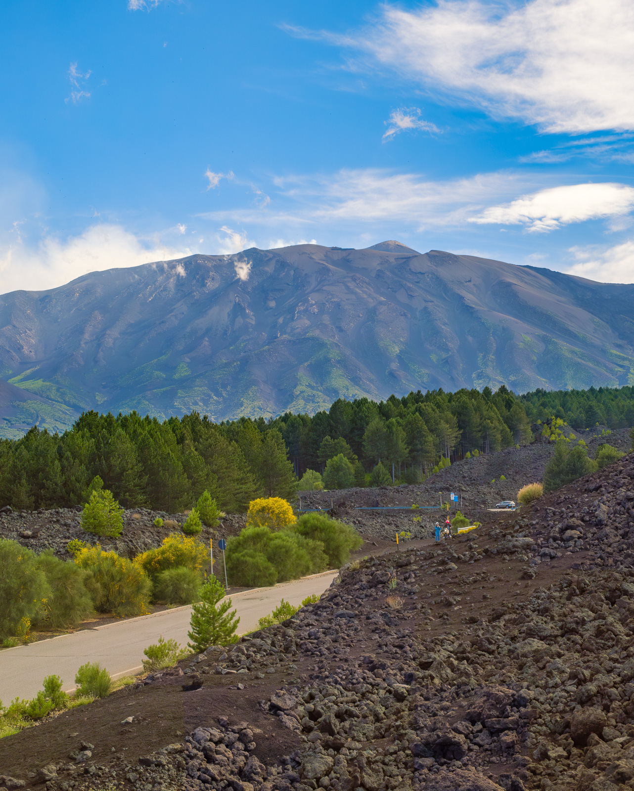 Câteva ore ne-am plimbat pe Etna. Nu pe jos, am mers cu mașina, dar tot a fost frumos. Eu nu am mai văzut așa un peisaj, natura este foarte diversă, cu păduri de brazi înalți, cu păduri de foioase cu scoarța argintie, cu tufe de pini înfloriți ce răspândesc un miros dumnezeiesc și cu porțiuni mari pe unde a trecut lava și-ți pare că ai aterizat pe altă planetă. Planul era să ne plimbăm cât mai mult pe acolo, să vizităm o casă în care a pătruns lava și să urcăm cât mai sus posibil cu mașina. Dar, ce bine că nu toate planurile se potrivesc. Chiar era o excursie frumoasă și nu credeam că după Bronte și după Etna va fi ceva care să ne surprindă plăcut cel puțin la fel de tare. Apoi am ajuns în Zafferana Etnea.