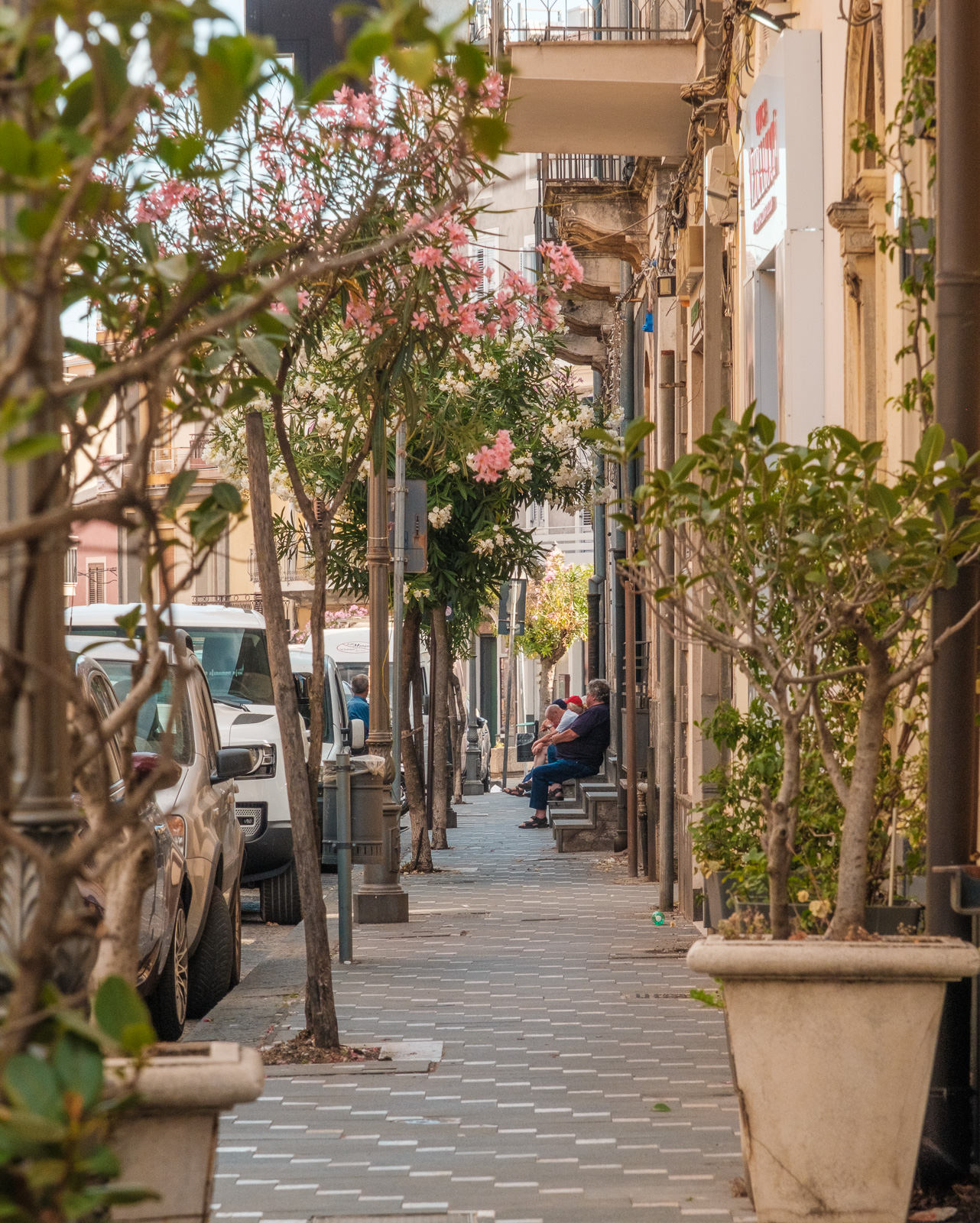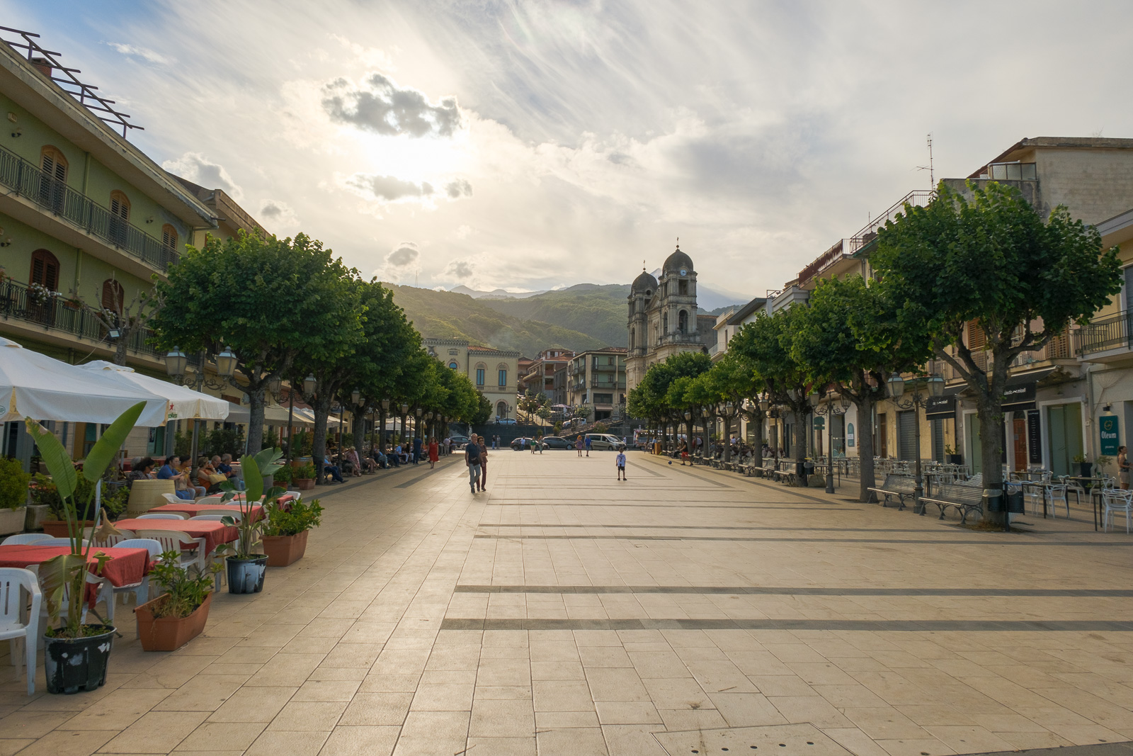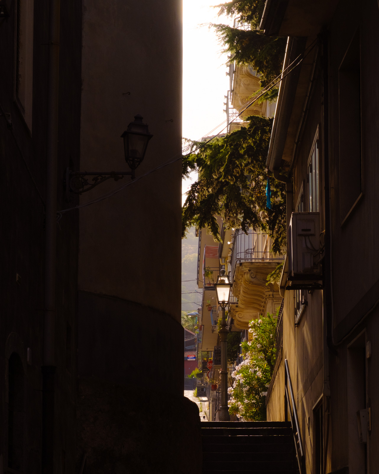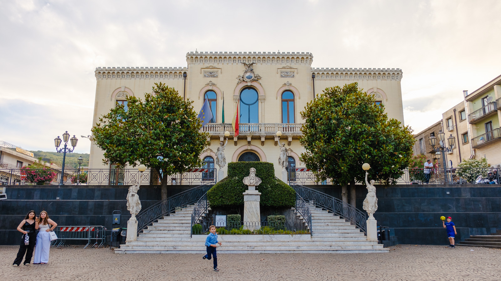 Era duminică seară și în mica piață din centrul orașului era o zarvă cum cred că numai la italieni poți întâlni: unii copii băteau o minge, alți făceau scheme cu bicicleta, câțiva adolescenți se plimbau de mână, adulții serveau ceva pe la terase și mai mulți seniori puneau țara la cale pe bănci. Toți vorbeau și gesticulau, rezultatul fiind o zarvă veselă și un vibe pozitiv. Într-un capăt al pieței, peisajul era întregit de o biserică mare unde avea loc o nuntă. Toată scena era dominată de Etna învăluită în nori și asezonată cu puțin fum. Atmosfera era atât de siciliană pe cât mi-o puteam eu imagina, mai lipsea doar ca socrul mare să fi fost capul mafiei locale. Poate era, cine știe.