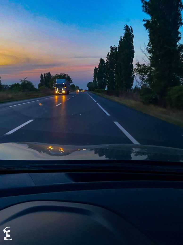 Provocarea majoră e atunci când drumul e plin de tiruri, iar de când cu războiul din Ucraina asta înseamnă se întâmplă tot timpul, zi și noapte, pentru că un Matiz intră pe acostament dar un camion ocupă acostamentul și aproximativ jumătate din sensul plin de circulație. Dar noi am învățat să ne strecurăm printre camioane și momente în care ai putea să-ți pierzi viața sau să rămâi schilod.