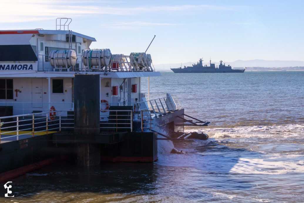 În primul rând, de când ne plimbăm noi pe acolo nu am văzut vreodată vreo navă militară. Anul ăsta am văzut trei. Una dintre ele a stat o perioadă bună fix în mijlocul fluviului Tagus, fiind înconjurată de feriboturile care aveau traseu pe acolo. Putea să “parcheze” oriunde altundeva dar părea că stă acolo tocmai ca să atragă atenția asupra ei.